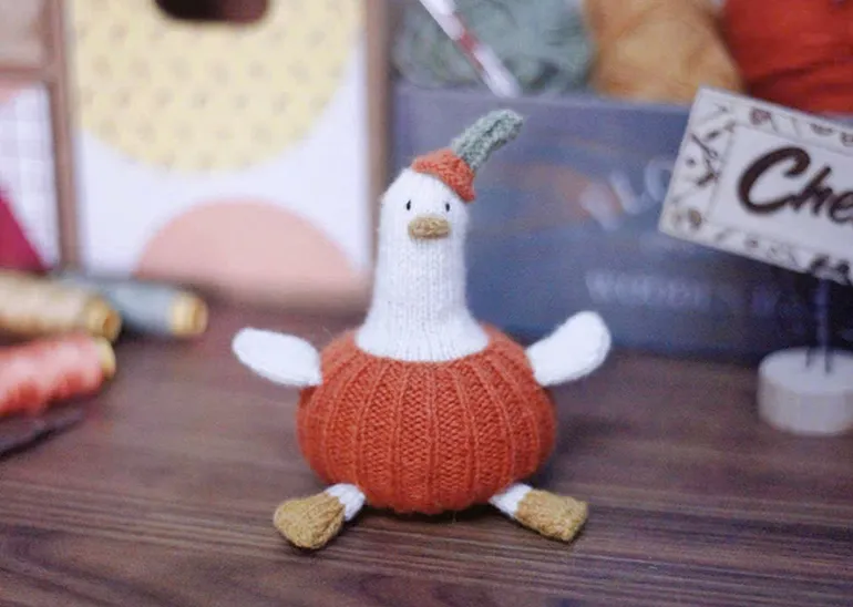 Cute Pumpkin Duck Knitting pattern for Halloween - Free & Easy Pattern for Beginners